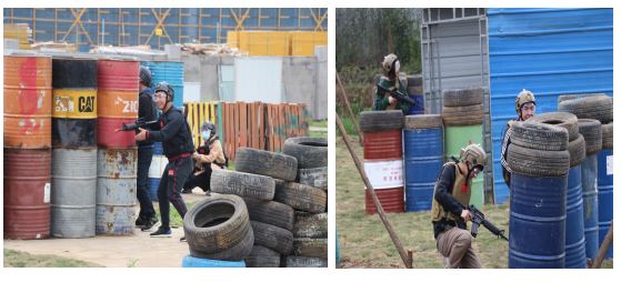 第二項(xiàng)活動(dòng),這也是大家期待已久的活動(dòng)“真人CS”和“卡丁車(chē)”。他們身穿鎧甲,帶上頭盔,手里還拿著神奇的長(zhǎng)槍,大步邁向戰(zhàn)場(chǎng),展開(kāi)了“激烈”的斗爭(zhēng)。